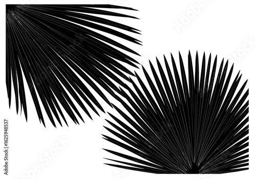© ALFAHRU, Obraz premium Two stylized, black palm fronds are arranged against a clean, white background, creating a striking contrast.