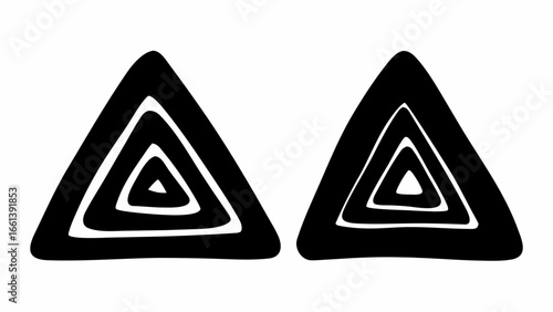Obraz premium Two stylized black triangles with concentric triangular shapes creating a...