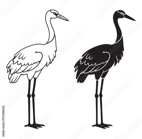 © MDREAZUL, Obraz premium Two stylized crane silhouettes in black and white isolated against a clean white background