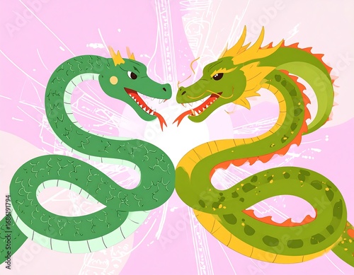 © Kedelai, Obraz premium Two stylized dragons facing each other