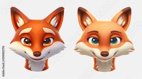 © Arthur, Fototapeta premium Two stylized fox head models showcasing different expressions and designs against a neutral background