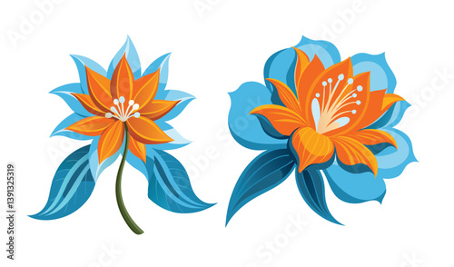 Fototapeta premium Two stylized orange and blue flowers illustration