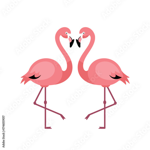 Naklejka premium Two stylized pink flamingos facing each other, showcasing a playful and romantic design.