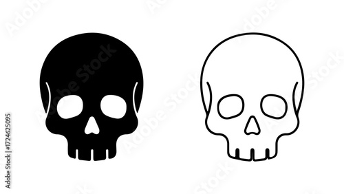 © Jamal, Fototapeta premium Two stylized skull icons one solid black and one outline representing danger or mortality.