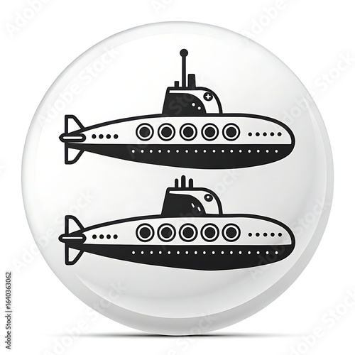© MdNajmul, Fototapeta premium Two stylized submarines in black and white on a white circular background
