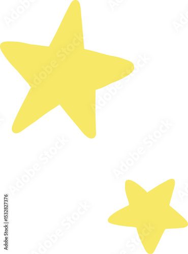 © vectorfusionart, Naklejka premium Two stylized yellow stars are floating on transparent background, showing flat handdrawn shapes