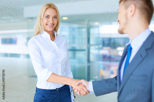 Obraz premium Two successful business people shaking hands with each other