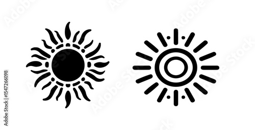 Fototapeta premium Two sun icons with different designs showcasing radiant beams and circular forms in a simple black and white style