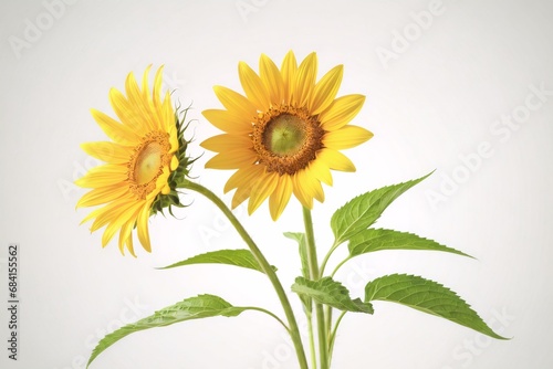 Naklejka premium two sunflowers with green leaves