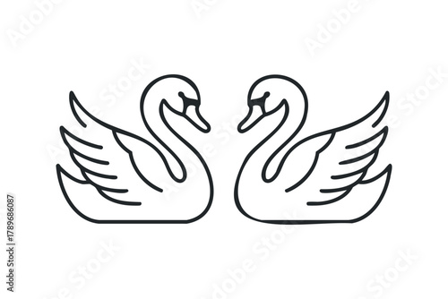 © Maestro, Obraz premium Two swans facing each other outlined on white background