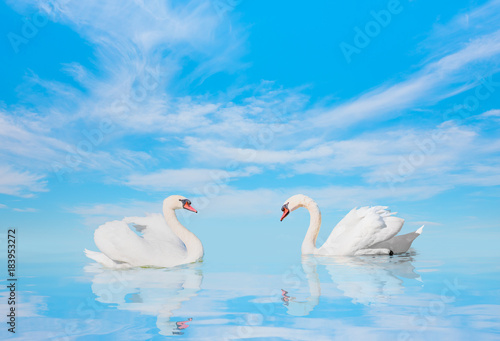Obraz premium Two swans floating on the water