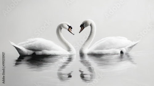 © Alienmarsh, Fototapeta premium Two Swans Forming a Heart in Still Water