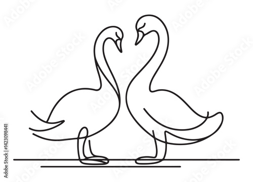 © Creative Image , Obraz premium Two Swans Forming a Heart Shape Single Line Art Design
