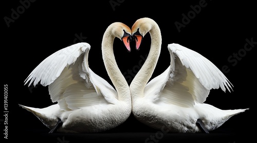 © santima, Fototapeta premium Two swans forming a heart shape with their necks.