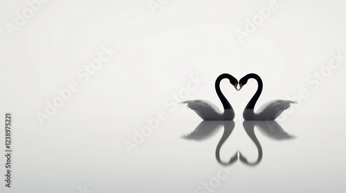 © Islam, Obraz premium Two swans forming heart shape with necks on lake