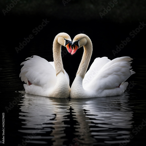 © HuddaimaZahra, Obraz premium two swans on the lake