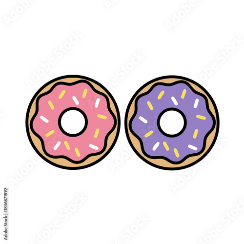 © sutini, Obraz premium Two Sweet Frosted Donuts With Sprinkles Isolated On Black Background Studio Shot