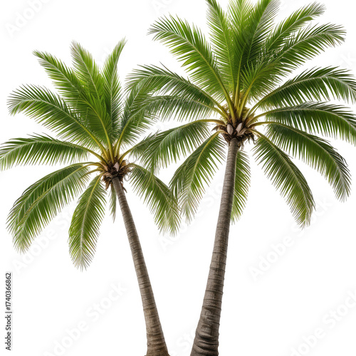 © Tamba, Fototapeta premium Two tall green palm trees against a transparent background