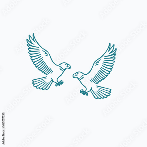 © MrFahim, Obraz premium Two teal eagles in flight facing each other bird birds