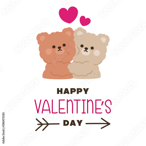 © lukpedclub, Fototapeta premium Two Teddy Bears Hugging with Valentine's Day Text