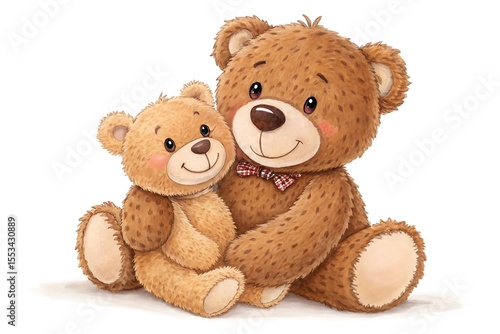 © UzzalMia, Obraz premium Two teddy bears sitting together on white background