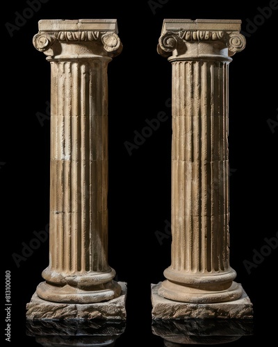 © MADGALLERY, Obraz premium two temple ancient columns on black background
