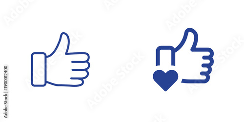 Obraz premium Two thumbs up icons with heart, isolated on transparent background