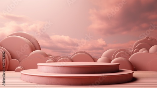 Fototapeta premium Two-Tiered Circular Platform Against a Pastel Pink Cloudy Sky