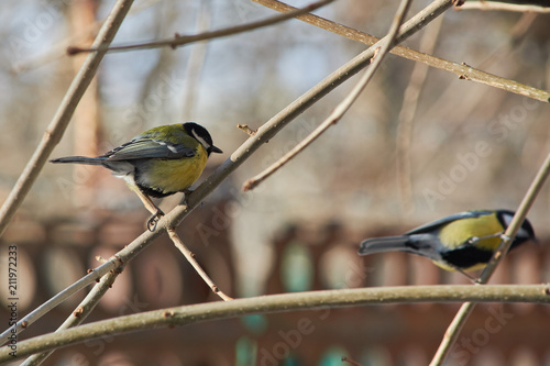 Fototapeta premium Two Tits sitting on tree branches