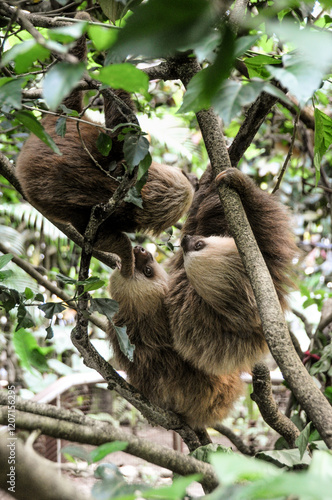 © areyouben, Fototapeta premium two toed sloth climbing up a tree