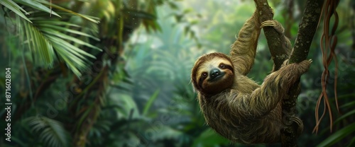 © TechArt, Obraz premium Two-Toed Sloth Hanging From A Tree Branch,High Resolution, Ultra HD
