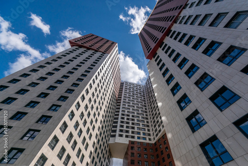© Alhim, Obraz premium Two towering buildings dominate the urban skyline, showcasing innovative architecture.
