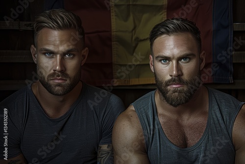 © Ksenia Belyaeva, Obraz premium two transgender men with a rainbow flag