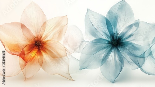 Fototapeta premium Two translucent flowers in orange and blue hues