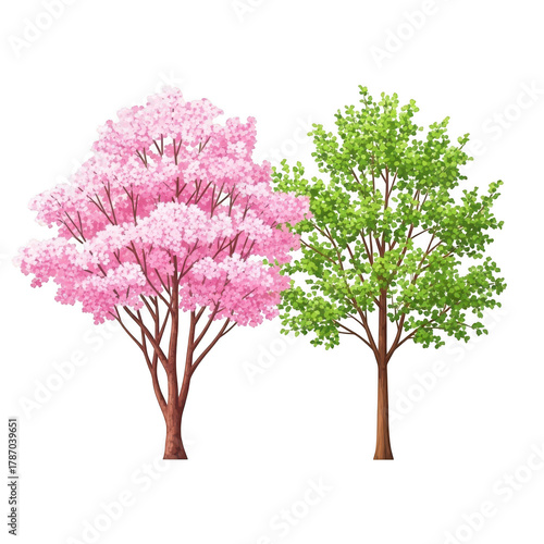© SHEKHA, Fototapeta premium Two trees with pink and green leaves