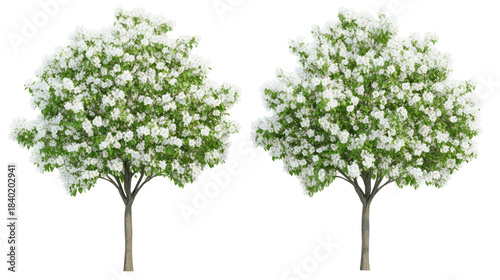 © Al-Mamun, Obraz premium Two unique ornamental pear trees with upright form and white spring blossoms on transparent background