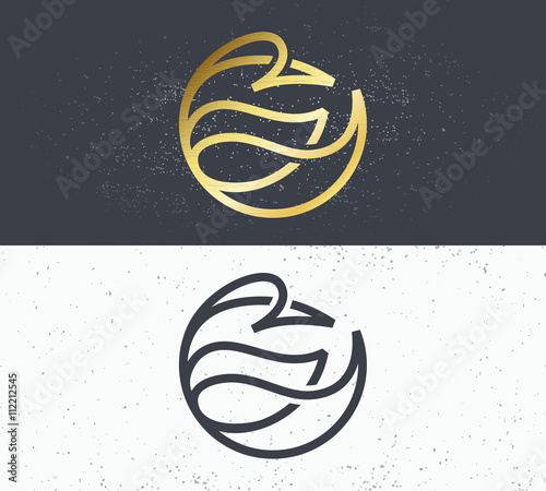 Naklejka premium Two vector symbols of nature, line bird logo