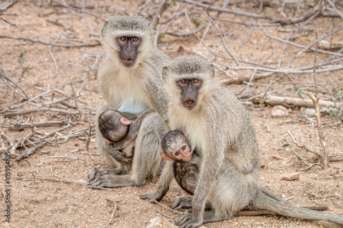 Obraz premium Two Vervet monkeys with babies