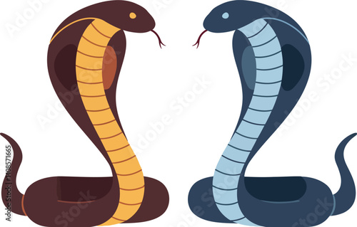 Fototapeta premium Two vibrant cobras in detailed flat design showcasing contrasting colors in vector art
