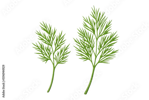 Fototapeta premium Two vibrant green dill sprigs are featured on a transparent background, ready...