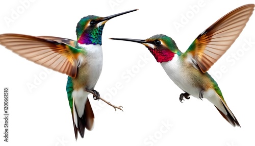 © Muchlis Nugroho, Obraz premium Two Vibrant Hummingbirds in Flight: A Stunning Display of Nature's Beauty