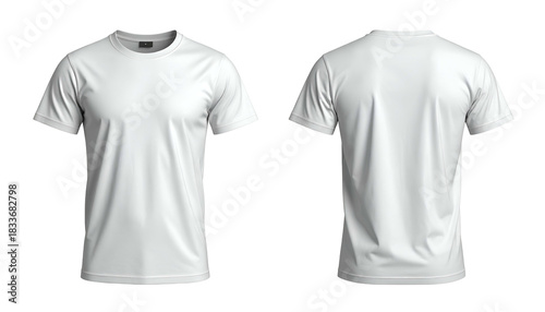 © Warcam, Naklejka premium Two views of a plain white t-shirt, front and back, isolated on a black background