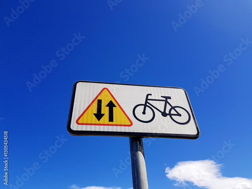 © the_pixel, Fototapeta premium Two-way bicycle road vertical sign.
