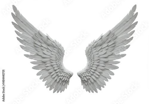 © stock.metket.com, Naklejka premium Two white angel wings with detailed feathers are isolated on a white background