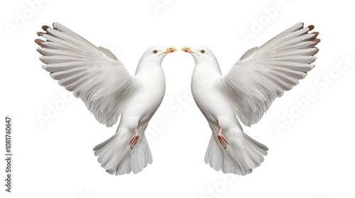 © ZeyBer, Obraz premium Two white birds facing each other with open wings