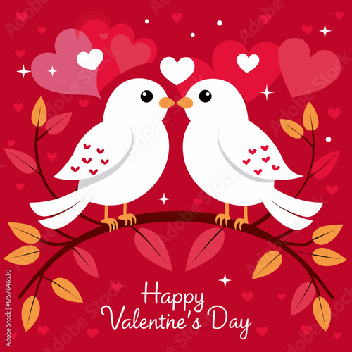 © Ripon, Obraz premium Two white birds on a branch with valentine's day hearts and message