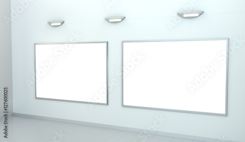 Obraz premium Two white blanks canvas on a wall 3D rendering