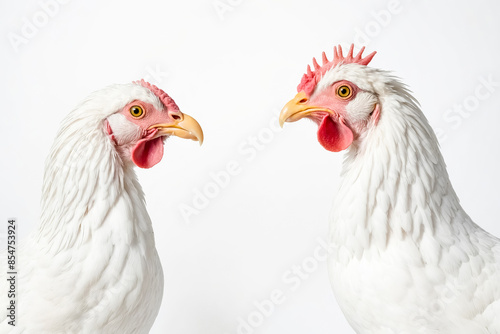 © Rysak, Fototapeta premium Two White Chickens Facing Each Other