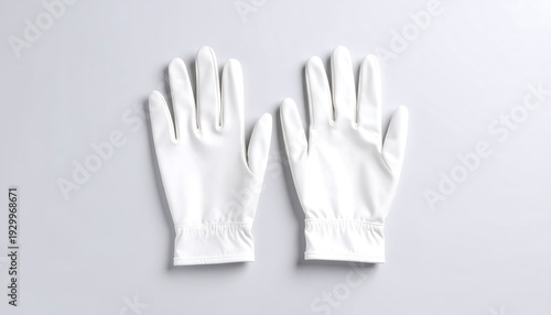 © Fc, Obraz premium Two white disposable gloves, top-down view on a light gray surface