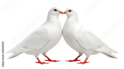 © PNGPlanet, Obraz premium Two white doves kissing in romantic pose with soft studio lighting on isolated white background for wedding decor